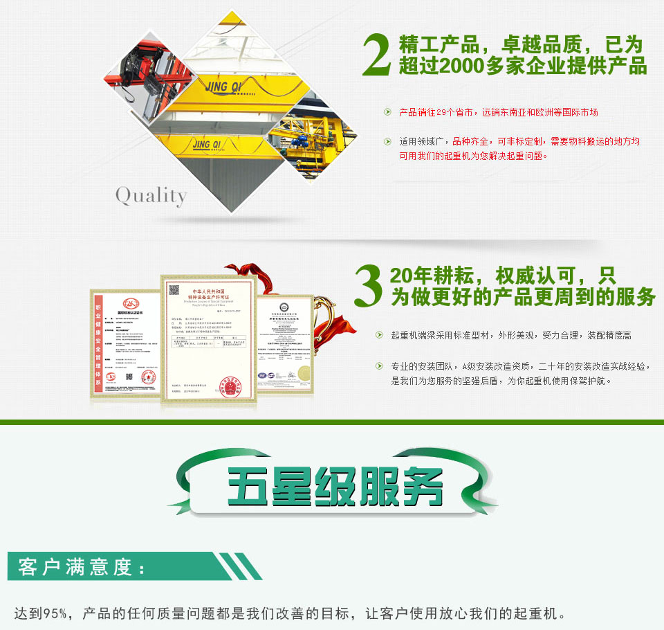 有需求才見專業(yè),有需求才見服務,靖江起重專業(yè)的技術團隊生產(chǎn)出來的起重機質(zhì)量非常好;產(chǎn)品性能優(yōu)良,質(zhì)量